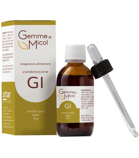 Gemme di Micol GI - Descrizione Integratore alimentare a base di estratti idrogliceralcolici di mirtillo rosso, tiglio, fico. Gli estratti sono ottenuti a partire dalla lavorazione di parti pianta fresca. Prodotto vegano. Alcol 30% vol. Idrati 30 ml. Anidri 9 ml. Ingredienti Estratti idrogliceralco… ...
