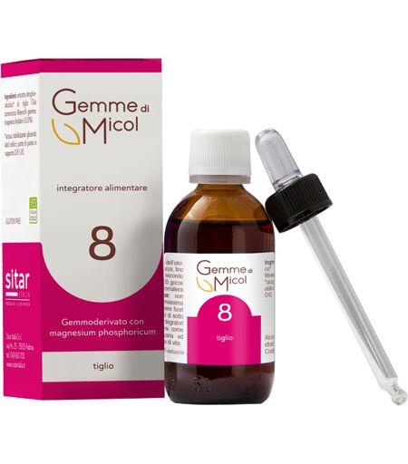 Gemme di Micol 8 - Descrizione Integratore alimentare a base di estratto idrogliceroalcolico di tiglio, ottenuto da parti di pianta fresca. Adatto ai vegani. Ingredienti Estratto idrogliceroalcolico* di tiglio (Tilia tomentosa Moench) gemme, magnesio solfato ( ...
