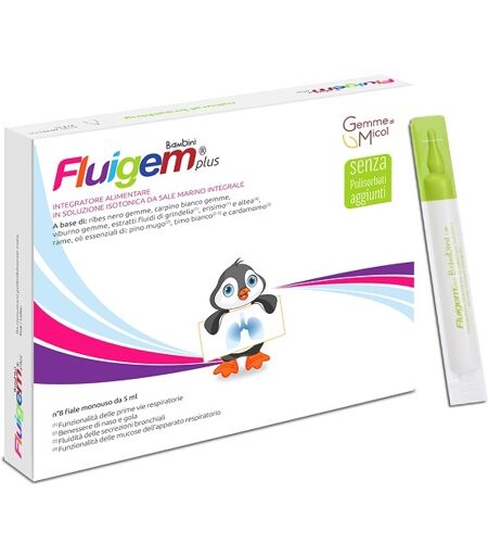 Fluigem Plus - Descrizione Integratore alimentare. Timo bianco: fluidità delle secrezioni bronchiali. Benessere di naso e gola. Pino mugo: effetto balsamico. Benessere di naso e gola. Grindelia - erisimo: azione emolliente e lenitiva (mucosa orofaringea) e tono della voce. Funzionalità delle prime … ...