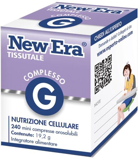 New Era COMPLESSO G - Descrizione Integratore alimentare formulato con 4 sali di schussler, fosfato di calcio, fosfato di potassio, fluoruro di calcio, cloruro di sodio, coadiuvante in caso di mal di schiena, rigidità lombare e lombalgie (in assenza di disfunzioni cliniche). Stanchezza, recupero fi… ...