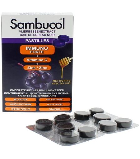 Sambucol - Descrizione Integratore alimentare a base di estratto di bacche di sambuco nero con vitamina C e zinco. Sambucol Immuno Forte - Capsule contiene bacche di sambuco nero che contribuiscono a mantenere le naturali difese dell'organismo e vitamina C e zinco che contribuiscono alla normale f… ...