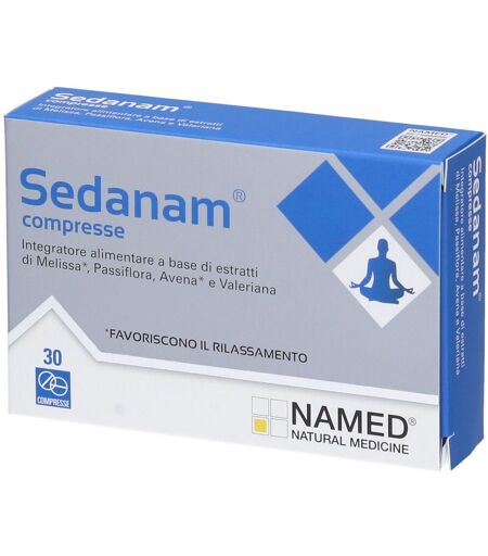 Gli integratori non sostituiscono un’alimentazione equilibrata e variegata e uno stile di vita sano. Integratore alimentare a base di estratti di melissa, passiflora, avena e valeriana. La melissa e l’avena favoriscono il rilassamento. Ingredienti: Agenti di carica: cellulosa, fosfato dicalcico, idrossipropilcellulosa; valeriana (Valeriana officinalis L.) radice e.s. tit. 0,8% in acidi valerenici, avena (Avena sativa L.) frutto e.s., passiflora (Passiflora incarnata L.) parti aeree con fiori e.s., melissa (Melissa officinalis L.) foglie e.s.; agenti antiagglomeranti: carbossimetilcellulosa sodica reticolata, biossido di silicio, sali di magnesio degli acidi grassi; agenti di rivestimento: idrossipropilmetilcellulosa, glicerolo. Valori medi per dose giornaliera (2 compresse) Valeriana e.s. acidi valerenici apportati 110 mg 0,88 mg Avena e.s. 110 mg Passiflora e.s. 100 mg Melissa e.s. 75 mg Assunzione consigliata: Da 1 a 2 compresse al giorno, da deglutire con acqua. Avvertenze: Non superare la dose giornaliera raccomandata. Tenere fuori dalla portata dei bambini al di sotto dei tre anni. L'eventuale lieve variazione del colore delle compresse può attribuirsi agli ingredienti di origine naturale in esse contenuti e non è indice di alterazione della qualità del prodotto. Conservazione: Conservare in un luogo fresco e asciutto. Si prega di fare riferimento, se necessario, ad ulteriori istruzioni riportate sulla confezione. Contenuto: 30 compresse. Produttore: Named Srl Via Lega Lombarda, 33 20855, Lesmo, MB Italia ...