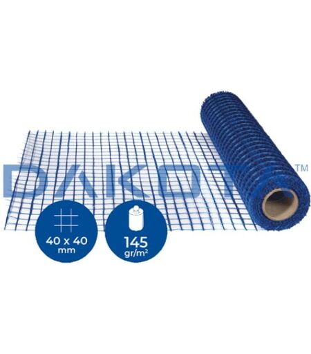 Rete di colore blu realizzata in fibra di vetro adfors saint-gobain di tipo e, impregnate con resine antialcaline sbr, interasse 40 x 40 mm, grammatura rispettivamente di 145 gr/mq. utilizzata nel rinforzo di pavimenti e massetti in alternativa alla tradizionale normale rete metallica (vergella) 100 x 200 cm, grazie all'ampio interasse, alla leggerezza e alla lavorabilità, è di facile e rapida posa sia a pavimento che su pareti. ...