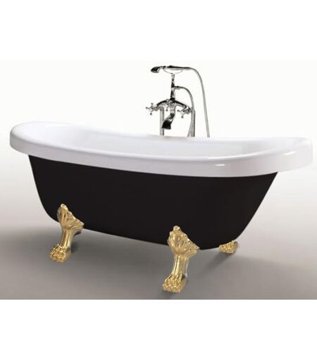 Simba - Vasca freestanding nera vintage 170 x 80 cm con piedi oro con rubinetto - Margherita Black