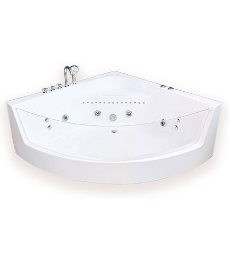 WHITE SHARK – Vasca Idromassaggio bianca dotata di ogni comfort, con vetro frontale e Cromoterapia. CARATTERISTICHE TECNICHE: Dimensioni della vasca idromassaggio: 150 x 150 cm – H 61 cm (diagonale 145 cm ) Dimensioni interne (inferiore): 145 x 70 x H 48 cm Pompa acqua da 1,5 HP n 4 getti grandi cromati n 4 getti piccoli cromati Seduta interna 35 x 55 larghezza x H 13 cm Struttura in acciaio Vetro Frontale Vasca da bagno in acrilico sanitario di alta qualità bianco Sistema di protezione contro le perdite di corrente (interruttore automatico) n 1 doccia multifunzione Rubinetteria inclusa n 1 interruttore n 15 luci led interne Cromoterapia Aspirazione dell'acqua Circolazione dell'acqua Peso: 100kg ...