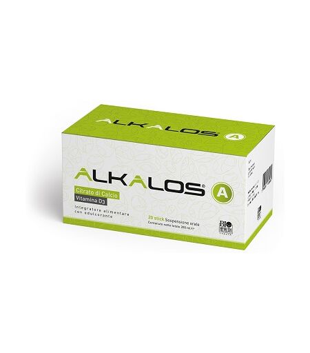 ALKALOS A - Descrizione Integratore alimentare a base di citrato di calcio e vitamina D3 con edulcorante. Il calcio è necessario al mantenimento di ossa normali. La vitamina D3 contribuisce a normali livelli di calcio nel sangue. Ingredienti Aqua, calcio citrato; stabilizzante: gomma di xanthan; co… ...