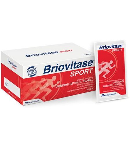 Briovitase Sport 4 Energie è un integratore ideale per sostenere l’organismo durante e dopo un’intensa attività fisica. Gusto di menta agrumi.Dopo e durante un'attività fisica avviene un aumento della temperatura corporea e di conseguenza inizia il processo di termoregolazione ossia l'eccessiva sudorazione provocando così le perdite saline. Attraverso l'utilizzo dell'integratore Sportivo Briovitase Sport 4 Energie sarà possibile sostenere l'organismo durante e dopo un'intensa attività fisica. Briovitase Sport 4 Energie è un integratore indicato per reintegrare le perdite saline che si hanno in seguito ad un'intensa attività fisica. La funzione dell'integratore alimentare Briovitase Sport 4 Energie è quella di sostenere il nostro organismo durante e dopo un'intensa attività sportiva riducendo così la stanchezza e l'affaticamento muscolare. Tutto ciò è possibile grazie ai 4 carboidrati presenti all'interno della formulazione ossia: fruttosio, saccarosio, destrosio e maltodestrina. I sali minerali: sono utili per reintegrare le perdite saline;I 4 differenti tipi di Carboidrati (fruttosio, saccarosio, destrosio e maltodestrina): apportano energia al nostro organismo.La Vitamina C è un importante antiossidante naturalmente presente nel nostro organismo. Sciogliere la bustina in 500 ml d'acqua (bottiglia o borraccia). Si consiglia di assumere il prodotto durante o immediatamente dopo l'attività fisica. Si consiglia di non superare le 3 buste al giorno. Tenere fuori dalla portata dei bambini al di sotto dei 3 anni di età.Gli integratori alimentari non vanno intesi come sostituti di una dieta variata, equilibrata e di un sano stile di vita.Conservare al riparo dalla luce e in luogo fresco e asciutto. Valori MediPer 100g%VNR*/100gValori medi per 22,5gIn 500 ml di acqua% VNR/22,5 g*energia1527 Kj/360 Kcal 343,6 Hj/81Kcal GrassiDi cui: acidi grassi saturi0,2 g0 19,9 g16,5 g proteine0,4 g 0,1 g Sale3,2 g 0,7 g (apporto di sodio)1288,9 mg 290 mg Vitamina C88 mg110,2%19,8 mg24,8%potassio648,9 mg 146 mg magnesio250 mg66,7%56,3 mg15,0%cloruro690,2 mg86,2%155,3 mg19,4%CarboidratiDi cui:zuccheri88,6 g73,5 g 19,9 g16,5 g Fruttosio, Saccarosio, Maltodestrine, Destrosio; Sodio Fosfato Monobasico; Acidificante: Acido Citrico; Magnesio Gluconato, Potassio Gluconato; Aromi; Sodio Cloruro; Vitamina C (Acido L-Ascorbico); Agente Antiagglomerante: Biossido Di Silicio. Gusto Menta-Agrumi. Senza glutine e naturalmente privo di lattosio. ...