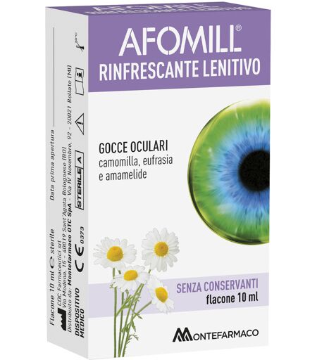 AFOMILL RINFRESCANTE LENITIVO - GOCCE OCULARI - Descrizione Soluzione sterile ad uso oftalmico senza conservanti, a pH fisiologico, a base di acque distillate di camomilla, amamelide ed eufrasia, indicata per alleviare la stanchezza e lo stress oculare causati da agenti atmosferici, fattori ambient… ...