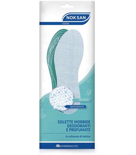 Nok San Solette Morbide Solette morbide in schiuma di lattice. Profumate e deodoranti. L'essenza racchiusa in milioni di microcapsule si libera gradualmente sotto la ripetuta pressione del piede. La sostanza battericida che elimina gli odori si attiva maggiormente con l'umidità del piede. Formato Confezione da 1 paio di solette. ...
