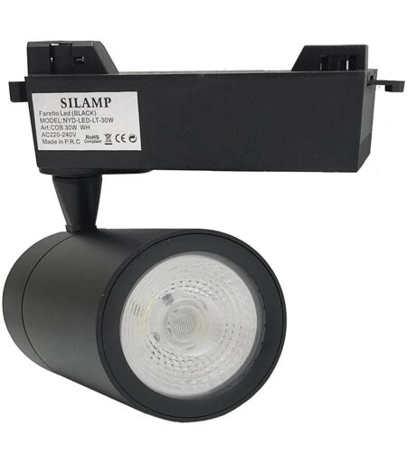 SILAMP - Faretto led Nero a binario 30W Monofase faro super compatto cob FB-24-30WLuce Calda 3000k