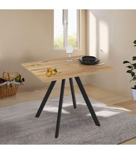 TOSCOHOME Tavolo rettangolare fisso con piano colore rovere e gambe nere 90x70 cm Lucas