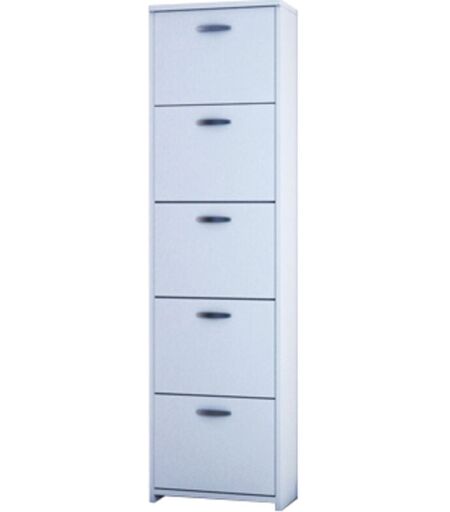 SCARPIERE DOPPIA PROFONDITA' 5 ANTE BIANCA NOBILITATO MELAMINICO CM.50x25xH182In nobilitato/melaminico spessore 18 mm., 5 ante, maniglie in plastica, doppia profondità "salvaspazio", interni con tasche portascarpe in plastica lavabile. Montaggio a scomparsa (no viti a vista). Dimensioni 50x25xH182 cm. ...