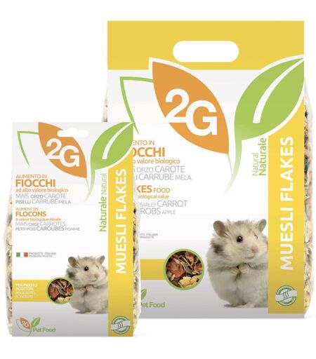 2G PET FOOD MUESLI FLAKES Alimento fioccato per i piccoli roditori in grado di apportare le sostanze necessarie che troverebbero in natura: Muesli Flakes 350 g