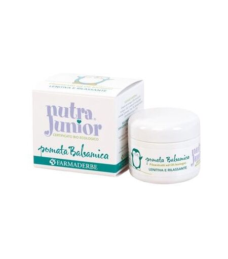 nutra Junior POMATA BALSAMICA - Pomata balsamica con purissimi oli essenziali dona un rapido sollievo grazie al profumo fresco e balsamico. Applicata con un delicato massaggio infonde una sensazione di intenso benessere favorendo sonni tranquilli. Certificata NATRUE standard internazionale molt… ...