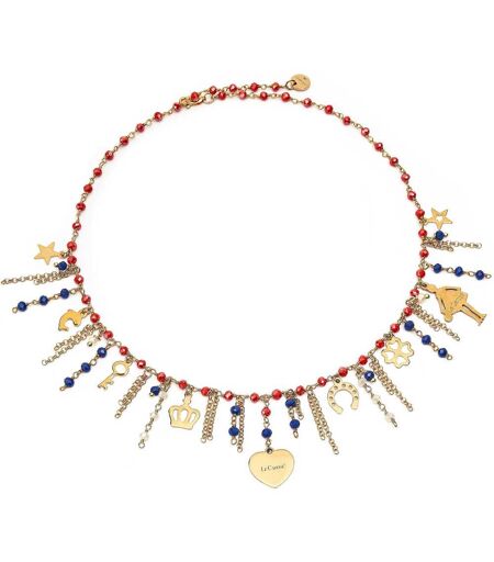 Collana Da Donna Di Le Carose Della Collezione Joie. Collana Con Rosario Con Cristalli Rossi E Blu, Impreziosita Da Pendenti In Bronzo Con Bagno Galvanico Oro. Dimensioni: Lunghezza 40 Cm. Chiusura Con Gancio. La Referenza È Cljoiero08., Materiale ...