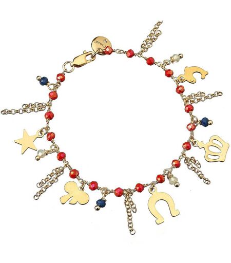 Bracciale Da Donna Di Le Carose Della Collezione Joie. Bracciale Con Rosario Di Cristalli Rosso E Blu, Impreziosito Da Pendenti In Bronzo Con Bagno Galvanico Oro. Dimensioni: Lunghezza 17 Cm. Chiusura Con Gancio. La Referenza È Brjoiero05., Materiale ...
