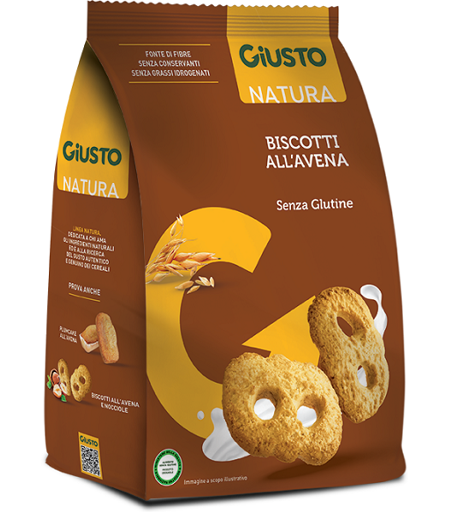 GIUSTO - BISCOTTI ALL'AVENA - Descrizione Biscotti all'avena. Fonte di fibre. - Ingredienti Zucchero, farina integrale di avena senza glutine 26%, farina di riso, fiocchi di avena senza glutine 9%, olio di girasole, uova, burro di cacao, sale; agenti lievitanti: tartrati di potassio, carbonati di s… ...