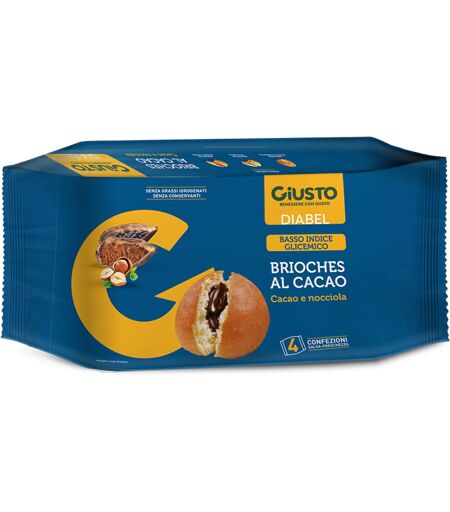 GIUSTO - DIABEL BRIOCHES AL CACAO - Descrizione Brioches al cacao, fonte di fibre. Senza conservanti e grassi idrogenati. Ingredienti Farine (frumento, frumento maltato), farcitura al cacao e nocciola 25% (edulcorante: sciroppo di maltitolo; fibra solubile, olio di girasole; umidificante: sorbitolo… ...