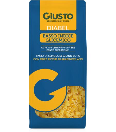 GIUSTO DIABEL - DITALINI - Descrizione Pasta di semola di grano duro a basso indice glicemico. Ad alto contenuto di fibre, ricche di arabinoxilano, e fonte di proteine. Ingredienti Semola di grano duro, acqua, 3,8% fibra solubile da frumento (arabinoxilani) e da orzo JAXplus da processo brevettato.… ...