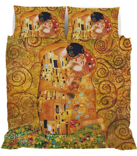 La parure copripiumino 2 piazze Il Bacio di Klimt firmata Datex porta l'arte direttamente nella tua stanza da letto. Realizzata in morbida microfibra, comprende il sacco copripiumino e le federe, con una stampa ispirata al celebre quadro di Gustav Klimt, che regala un tocco di eleganza e originalità. Disponibile in diverse fantasie di quadri d’autore, è pensata per chi ama circondarsi di bellezza. I colori brillanti restano vividi anche dopo numerosi lavaggi, mantenendo la qualità e la brillantezza nel tempo. Made in Italy, facile da curare: lavabile in lavatrice a 60° e asciugabile in tamburo. Un pezzo unico che trasforma il tuo letto in una vera e propria opera d’arte! ...