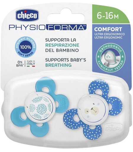 Chicco Succhietto Physio Comfort Boy Silicone 6-16 Mesi 2 Pezzi - Succhietti Physio Comfort Silicone