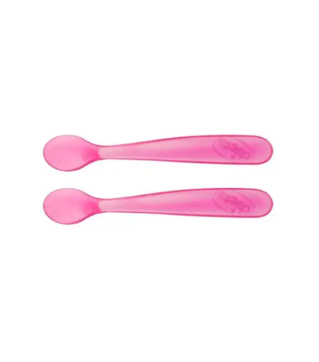 Artsana Spa Chicco Cucchiaio Silicone 6m+ Girl, Cucchiaio Morbido per Svezzamento, 2 Pezzi