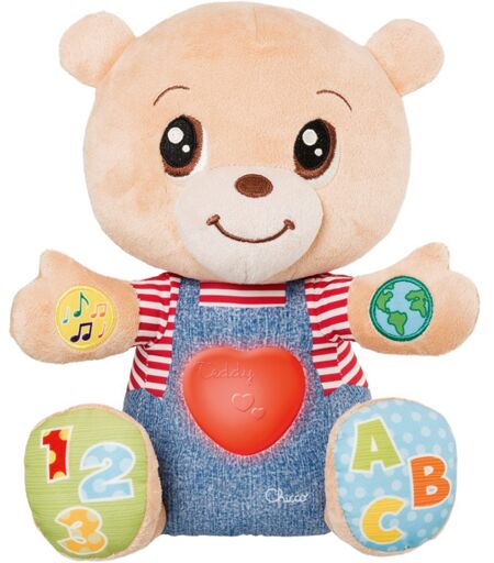 chicco - Teddy orsetto delle emozioni - Descrizione Peluche educativo bilingue che aiuta a sviluppare le capacità cognitive, insegna le prime lettere e i numeri grazie al suo cuore che cambia colore. Grazie a Teddy, il bambino impara a riconoscere ed esprimere le emozioni. Realizzato da Chicco in s… ...