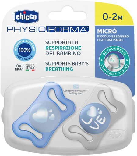Chicco Succhietto Micro Azzurro Silicone 2 Pezzi 0-2 Mesi - Ciuccio Micro Azzurro Silicone