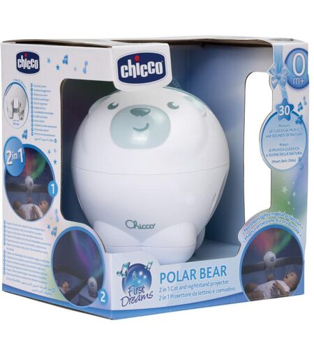 CHICCO Gioco Proiettore Orso Polare Blu, Chicco, Proiettore per Culla, Musica e Luci, per Bambini - DESCRIZIONE PRODOTTO: - Il proiettore orso polare Chicco è il compagno perfetto per il sonno del tuo bambino. Con la sua forma simpatica e il sistema di aggancio modulare, si adatta facilmente a tutt… ...