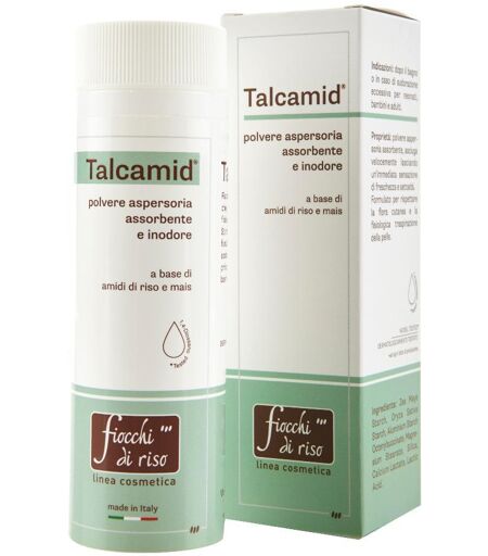 Fiocchi Di Riso Talcamid Polvere 50g - DESCRIZIONE PRODOTTO: - La Polvere Talcamid Fiocchi di Riso è una soluzione dermatologicamente testata, ideata per assorbire efficacemente il sudore in eccesso e mantenere la pelle fresca e asciutta. Con una formulazione arricchita con amido di riso e di mais,… ...