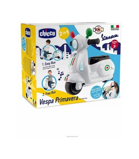 CCH Gioco Vespa Primavera Chicco, Cavalcabile per Bambini 1 - 3 Anni, Attività Elettroniche, Stile Vespa, Ruote Supporto - DESCRIZIONE PRODOTTO: - La Vespa Primavera Chicco è il cavalcabile perfetto per i bambini dai 1 ai 3 anni, ispirato al leggendario stile urbano della vera Vespa Primavera. Con … ...