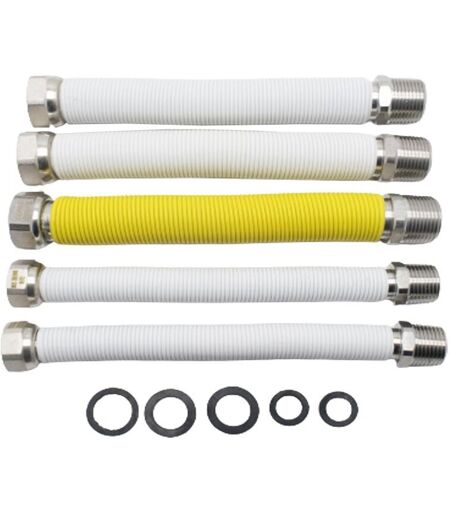 Kit Allacciamento caldaie acqua/gas Tecnogas, composto da: 2 Flessibili acqua lunghezza 20 cm diametro 1/2 Maschio/Femmina 2 Flessibili acqua lunghezza 20 cm diametro 3/4 Maschio/Femmina 1 Flessibile Gas Riv. Lunghezza 20 cm diametro 3/4 Maschio/femmina 5 Guarnizioni in gomma Tipologia : Flessibili per caldaie ...