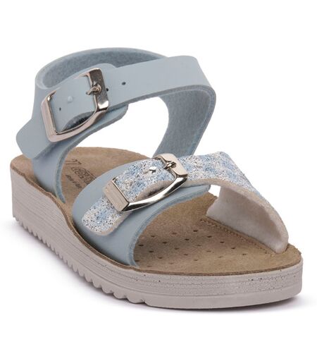 sandalo da bambina flessibile e leggero con il sottopiede in pelle compagno ideale dei giochi estivi e delle attivita all'aperto. sandalo regolabile con fibbie. made in italy. colore: azzurro. ...