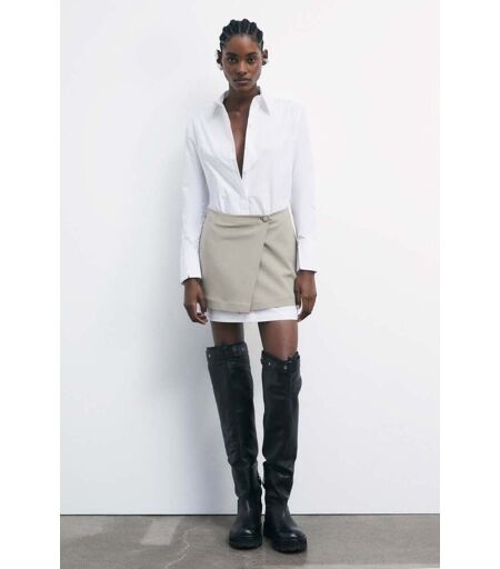 Realizzato in gabardina per un equilibrio perfetto tra comfort e struttura, il mini abito chemisier si distingue per la doppia costruzione con gonna a portafoglio in contrasto colore, che si chiude asimmetrica sul davanti. Completa il look con gli stivali overknee Roundshape per un tocco rock dall'attitude decisa. ...