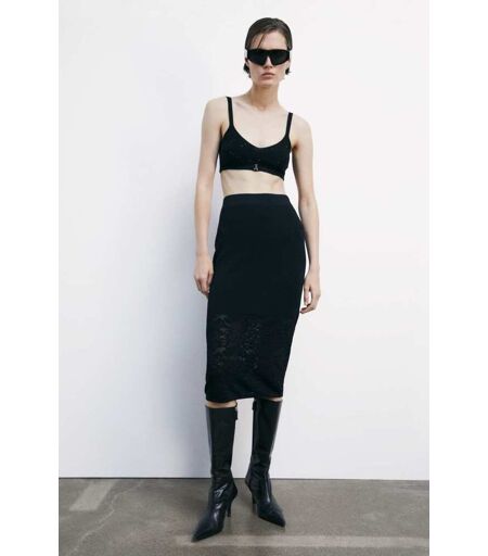 Patrizia Pepe Gonna midi in maglia effetto pizzo nero I