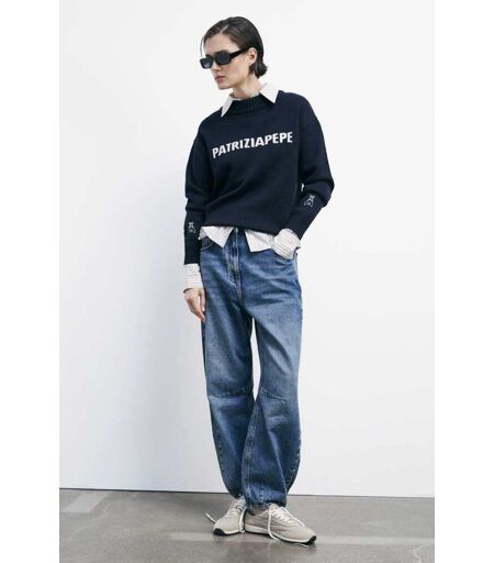 Maglione girocollo realizzato in maglia di medio spessore, compromesso ideale tra calore, struttura e vestibilità. Il logo sul davanti richiama l’estetica athleisure dello streetwear contemporaneo, ma provalo anche con i pantaloni in tessuto spalmato e spazzolato dalle nuance fondenti e le pumps glossy di collezione. ...