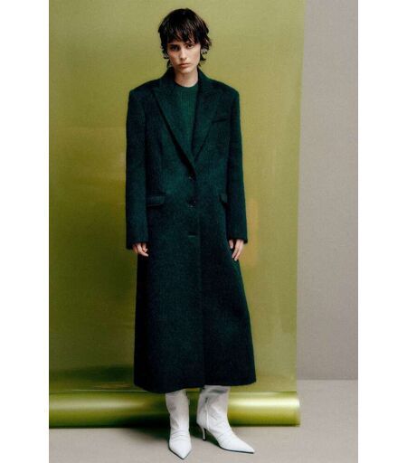 Must-have invernale: questo cappotto stupisce per la texture ricercata e la silhouette contemporanea. Le spalle pronunciate e il fit boyish si fondono con la morbidezza del panno a pelo lungo, in un capospalla sofisticato dal carattere audace. Il piercing in metallo sul retro del collo, dettaglio iconico, ne sottolinea l'anima rock. Completa con gli stivali crinkle per un look statement. ...