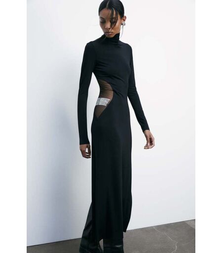 Patrizia Pepe Abito lungo a collo alto con strass nero I