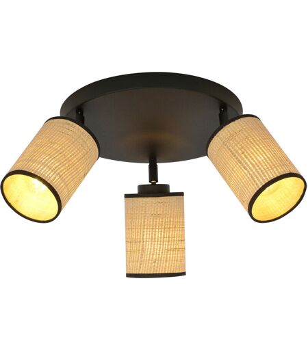 BONETTI ILLUMINA - Plafoniera Tonda Spot 3 Luci Bronx In Acciaio Nero e Rattan Paralumi Regolabili