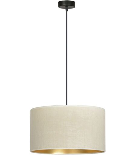 Collezione Ganesha ARTIGIANATO MODERNO PER CASE VERE Sospensione 1 luce realizzata con base in metallo tonda di colore nero e paralume tessile di forma cilindrica di colore beige all'esterno e dorato all'interno. La lunghezza regolabile dei cavi consente la personalizzazione in base alle esigenze individuali. I paralumi sono realizzati in materiale resistente con una texture vellutata e un centro dorato. La struttura semplice e l'elegante combinazione di colori lo rendono una scelta versatile per vari spazi. ...