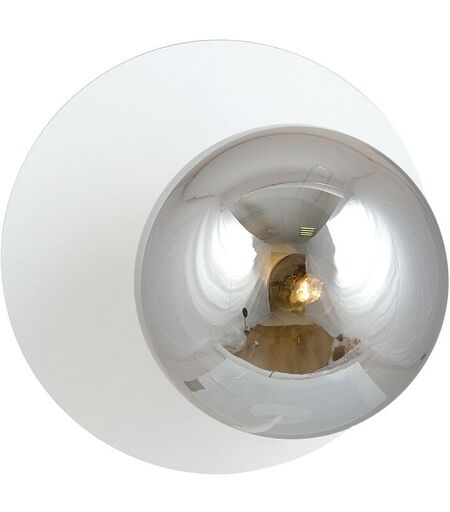 Collezione Ippolita TUTTA LA LUCE DELL'ARTIGIANALITÀ Lampada da parete realizzata con corpo in metallo di colore bianco a forma di disco e paralume in vetro color fumè di forma sferica. Il suo segreto risiede nella forma estremamente sobria, nel metallo freddo, nelle superfici lisce e nella tavolozza dei colori uniforme, che affascina gli appassionati di ordine, semplicità e forme armoniose. ...
