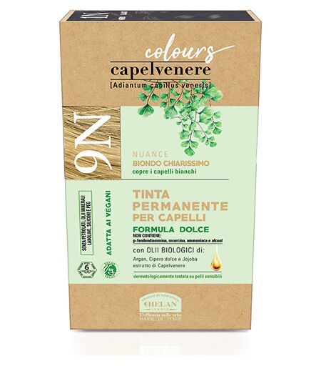 CAPELVENERE TINTA PERMANENTE - BIONDO CHIARISSIMO - Formula dolce Copre i capelli bianchi - Descrizione Capelvenere Colours nasce dalla richiesta di una tinta sempre più delicata che anche le pelli più sensibili possano usare. L'inserimento di 3 olii biologici (argan, cipero dolce e jojoba) e di 1 … ...