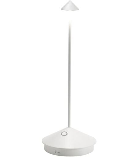 ZAFFERANO Lampada a led da tavolo Pina Pro Bianca ricaricabile e dimmerabile senza fili CCT 2200-2700-3000K IP54 Batteria da 12h