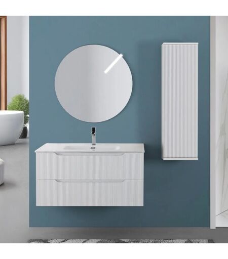 INBAGNO - Mobile bagno sospeso 100 bianco cannettato doppi cassetto lavabo e specchio Wise