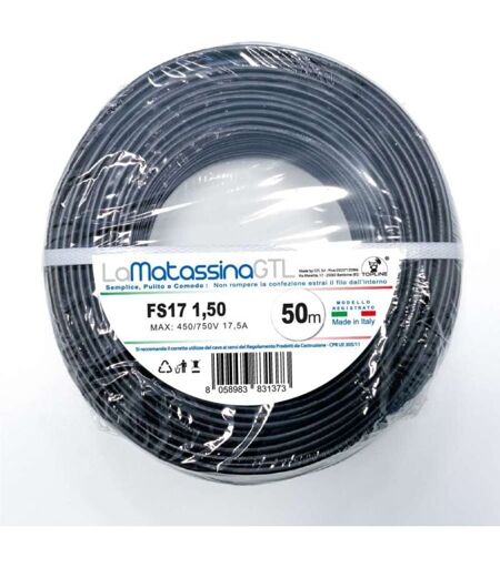 Cavo per energia isolato in PVC di qualità S17 nel colore nero. Semplice, pulito e comodo. Matassa da 50 metri - 1,5 mq.. Acquistalo subito da CFadda e ricevilo comodamente a casa. ...