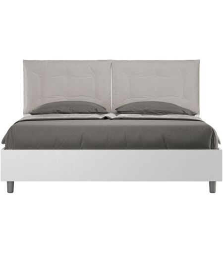 ITAMOBY - Letto matrimoniale con rete 160x190 bianco frassino cuscini similpelle tortora Egos Annalisa