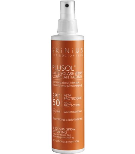 Latte solare spray corpo antiaging con complesso di Plusolina. Protezione avanzata UVA/UVB, favorisce abbronzatura rapida e naturale. Nutre e idrata la pelle, adatto per pelli sensibili, resistente all'acqua. Flacone da 200 ml. ...