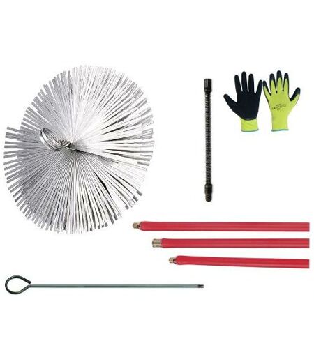 Kit Scovolo per la pulizia del camino, ideale per Canne Fumaria in Acciaio Inox, ottimo anche per Tubi di altro materiale come lamiera porcellanata e smaltata. Il Kit comprende: Uno scovolo da 35 cm + una Prolunga Flessibile a molla da 25 cm + una Prolunga rigida in acciaio con Manico + 7 aste filettate flessibile da 1 metro. Tutti i componenti sono dotati di perno filettato da 12M, e' quindi compatibile con la maggior parte dei kit in commercio. Le aste sono flessibili fino a 45o. Scovolo tondo indispensabile per la pulizia di tubi stufa, camini. Per un perfetto tiraggio e contro l'autocombustione del camino. Setole piatte in acciaio temperato con attacco filettato 12 MA e gancio ad anello. Compatibili con tutti gli accessori per la pulizia di stufe e camni presenti nel nostro catalogo. Materiale in acciaio inossidabile, resistente e durevole nel tempo. Ideale per pulizie piu' aggressive, per incrostazioni importanti e sporco sedimentato. E' consigliabile utilizzare uno scovolo dello ...