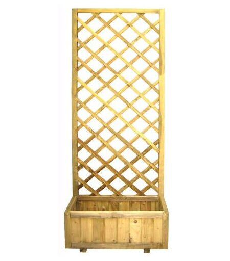 EACOMMERCE Pannello Grigliato Legno di Pino Impregnato 75x30x180 Con Fioriera Giardino