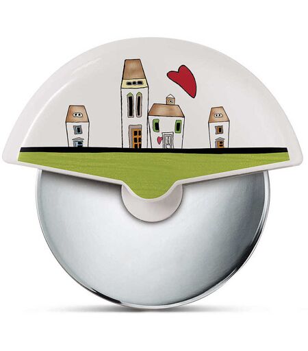 Tagliapizza Di Egan Della Collezione Le Casette. Oggetto Realizzato In Acciaio - Polipropilene Di Colore Verde. Dimensione: 8,5 Cm. La Referenza È Klc77/02v, Colore: Arancione, Azzurro, Beige, Bianco, Blu, Bordeaux, Fantasia, Giallo, Grigio/Argento, ...